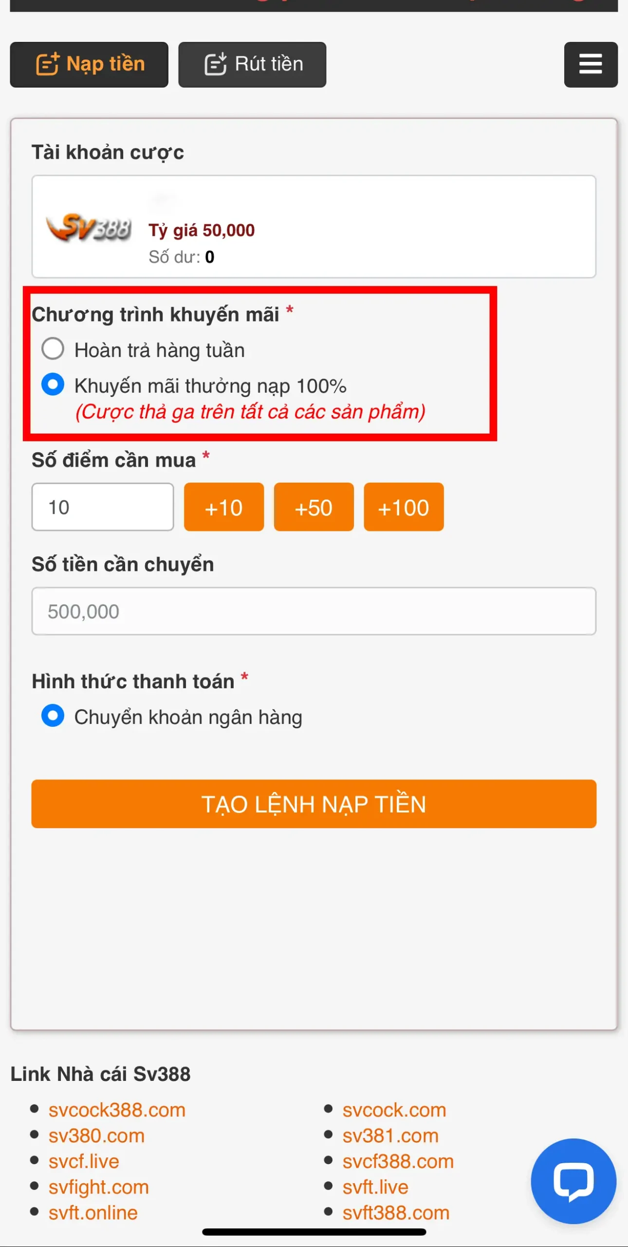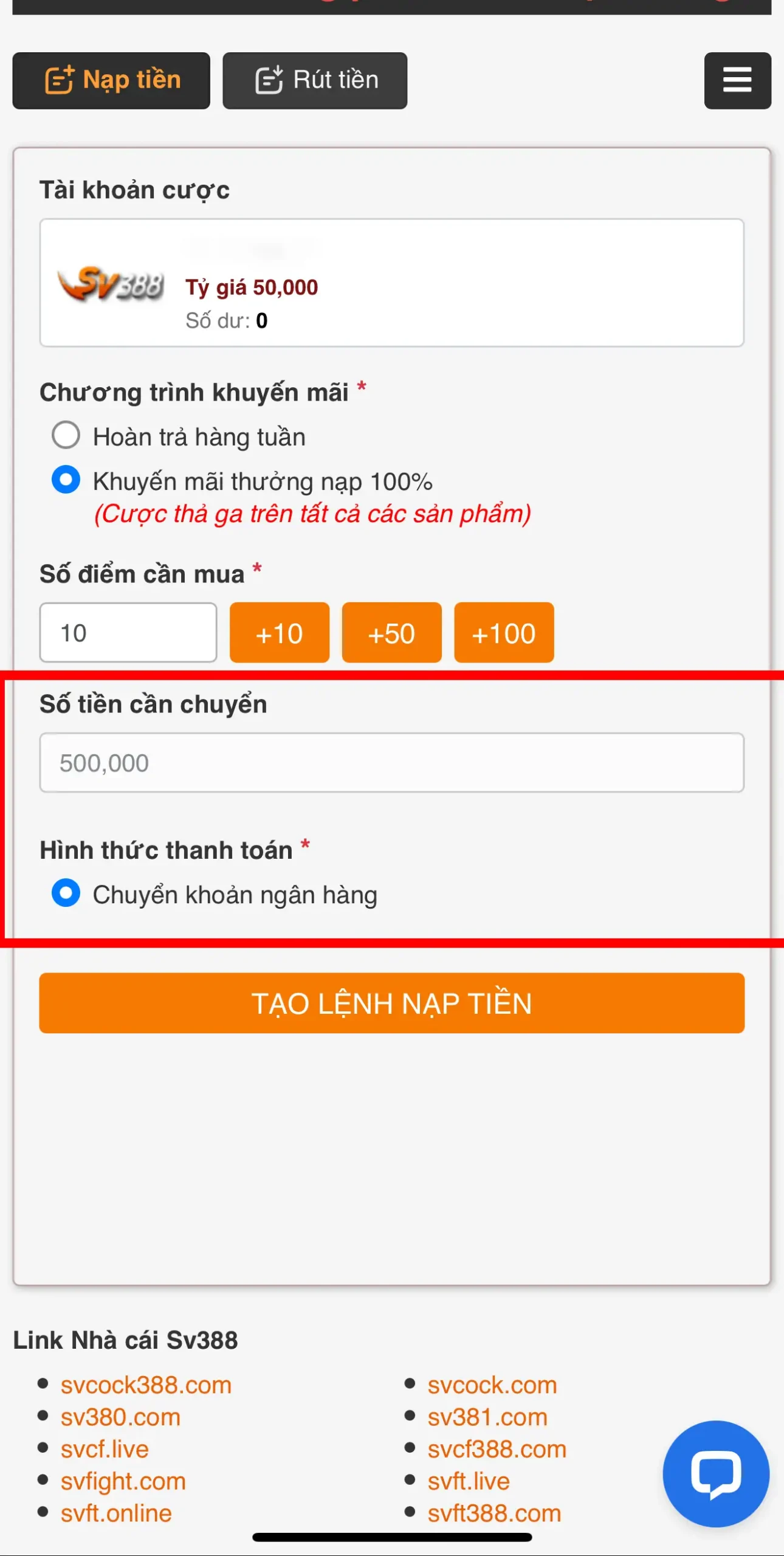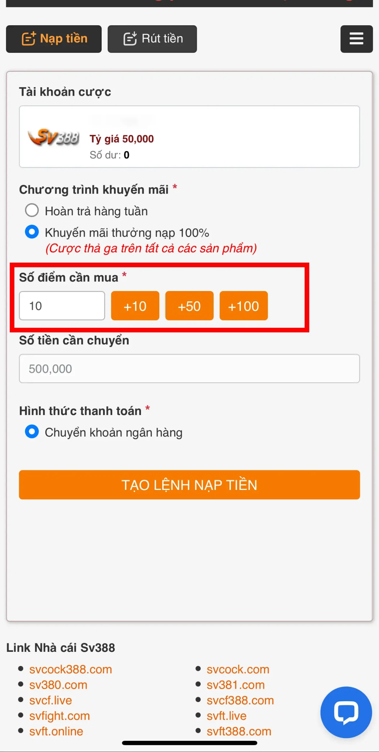 Điền chính xác số điểm muốn nạp, số tiền bạn cần chuyển sẽ hiển thị bên dưới cho bạn. Tối thiểu khi nạp là 10 điểm.